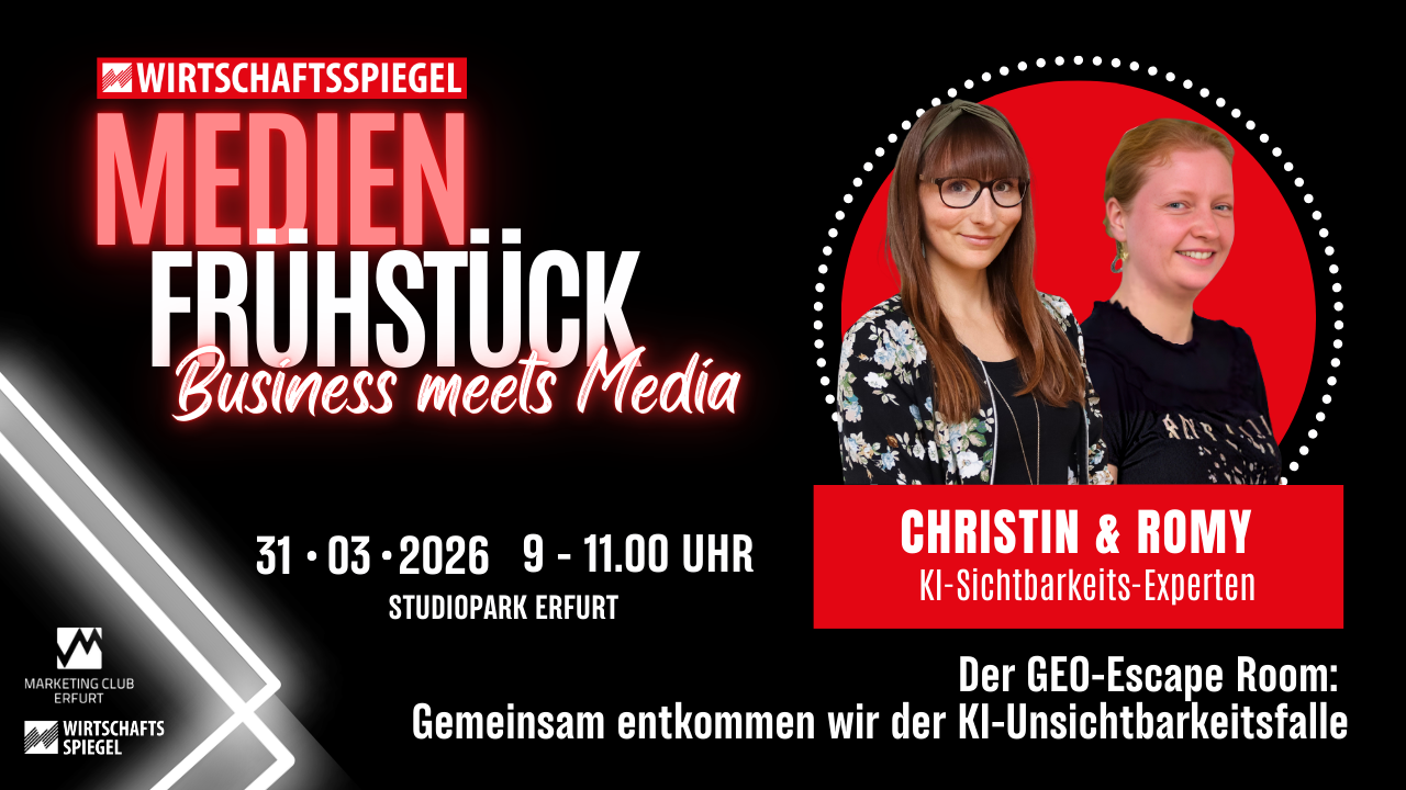 Ein grauer Nebel liegt dicht und schwer vor eurem Unternehmen. Eure (Wunsch-)Kunden sehen euch nicht mehr. Jeder Versuch, auf euch aufmerksam zu machen, scheitert. Der dunkle Schleier ist einfach zu stark. In dieser Ausgabe des Medienfrühstückes laden wir euch zu einem Escape Room ein. Gemeinsam finden wir den Weg aus der Unsichtbarkeit. GEO (Generative Engine […]